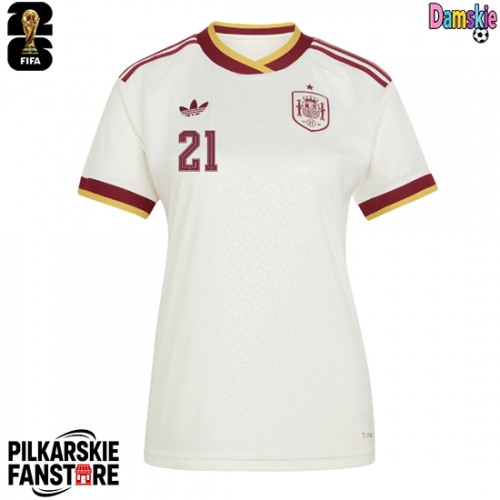 Tanie Strój piłkarski Hiszpania Mikel Oyarzabal #21 Koszulka Wyjazdowej dla damskie MŚ 2026 Krótkie Rękawy Tanie Strój piłkarski Hiszpania Mikel Oyarzabal #21 Koszulka Wyjazdowej dla damskie MŚ 2026 Krótkie Rękawy