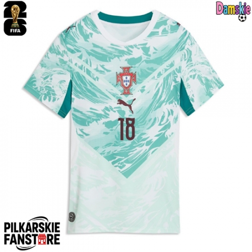 Tanie Strój piłkarski Portugalia Pedro Neto #18 Koszulka Wyjazdowej dla damskie MŚ 2026 Krótkie Rękawy Tanie Strój piłkarski Portugalia Pedro Neto #18 Koszulka Wyjazdowej dla damskie MŚ 2026 Krótkie Rękawy